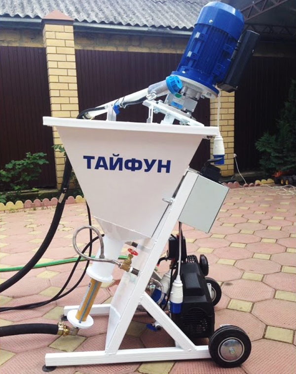 טַיִפוּן. תחנת טיח של יצרן מקומי באותו שם מסטברופול. הציוד הוא העתק פשוט ביותר ומצער במיוחד של ה- PFT Ritmo L-L4-2. מבין החסרונות העיקריים, שם המשתמשים: