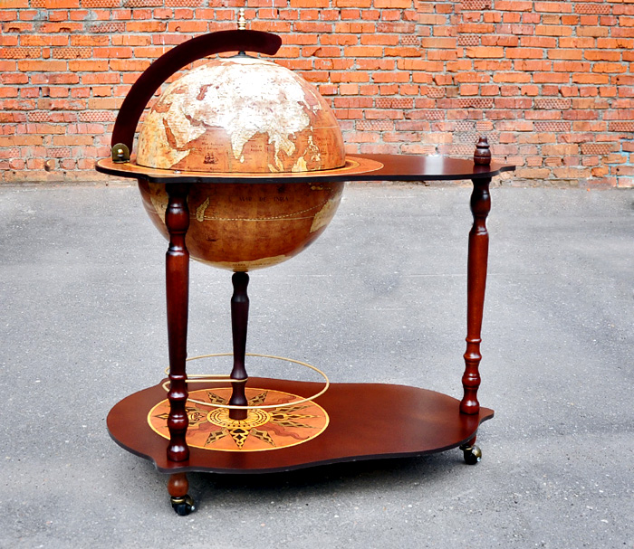נותר רק לחבר את הגלובוס למסגרת עץ כלשהי. לשם כך ניתן להשתמש גם בשולחן קפה רגיל. אתה יכול גם ליצור מעמד רצפה אישי עם שכבות נוספות של קורות עץ ולבנות דלפק בר מיני. ניתן לכה או לצבוע אותם עוד יותר. מסגרת כזו מורכבת באמצעות מברג ו ברגים הקשה עצמית או ציפורנים קטנות.