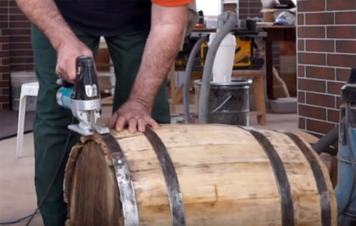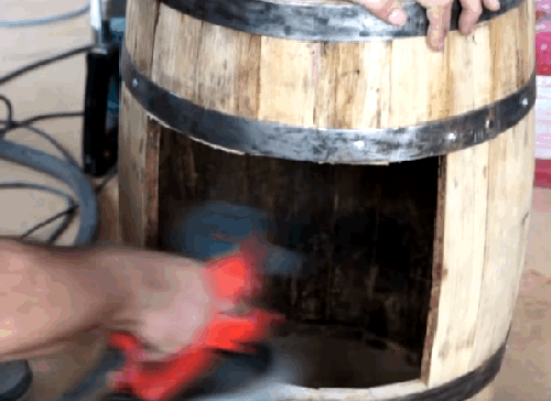 כל מה שנדרש לעבודה הוא חבית קטנה ישנה, מטחנה, צבע, סקוטש. זו תהיה אלטרנטיבה מצוינת למיני בר העשוי במו ידיך מעץ.
