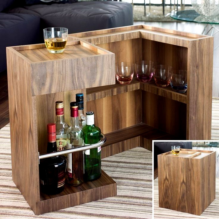 העיצוב של מוצר זה יכול להיות מורכב או פשוט. לדוגמא, לפעמים בעל הבית לא יכול למצוא אפשרות מתאימה להתאמה לחלל הפנים המוגמר. אולי יש יותר מדי מחלקות בפנים, או להפך, תאים מאפשרים לך לאחסן משהו שאינו נחוץ כלל. לכן, יש רצון להכין בר בעצמך. בואו נחליט לשם מה הוא זקוק: