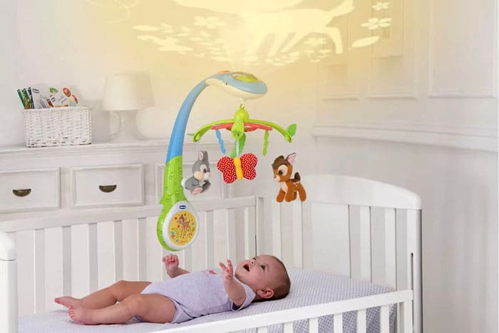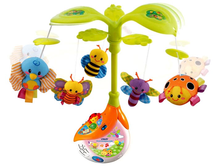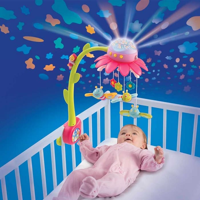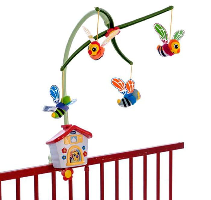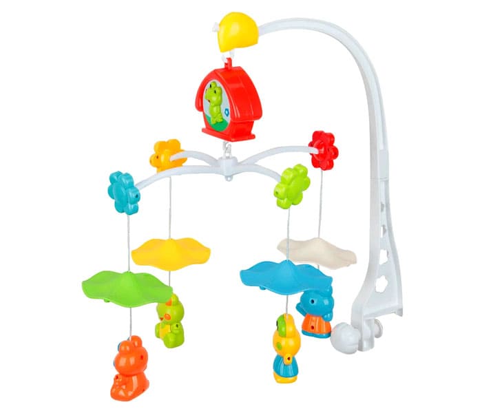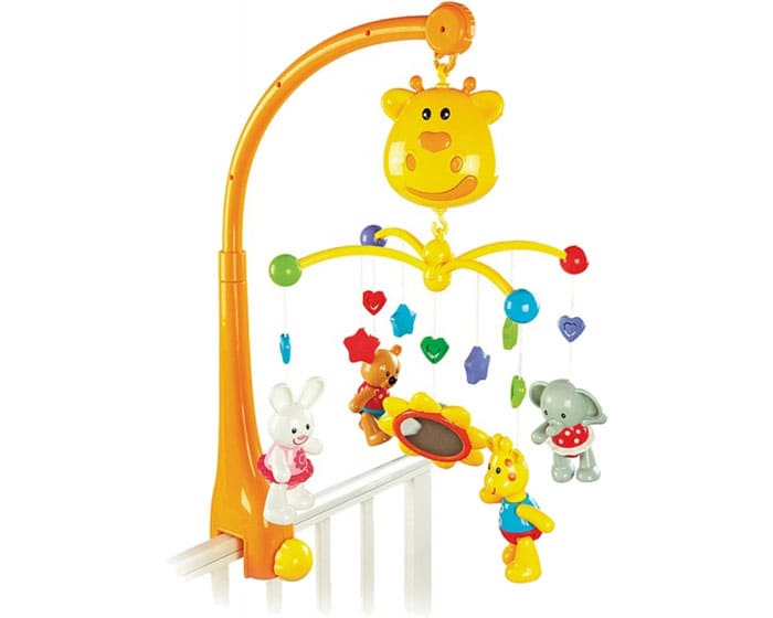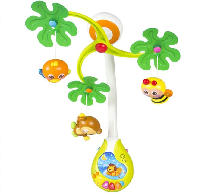 הילד יתפעל מפרחים, דביבון, חום ושועל, וצעצועים על בסיס מסתובבים בקצב למוסיקה המנגנת.