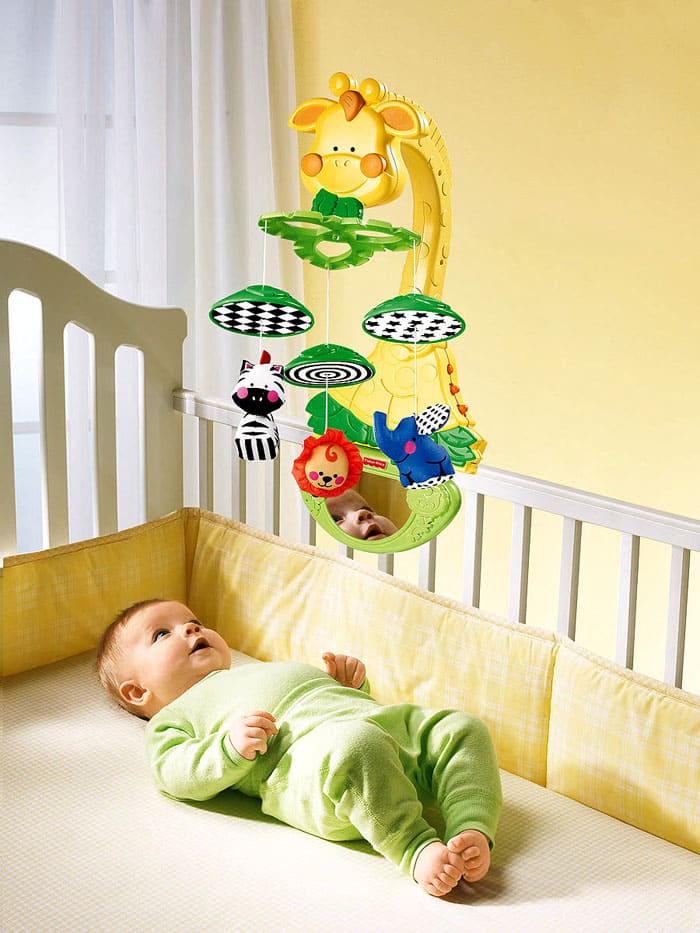 מכיוון שהילד עדיין לא יכול לתפוס צעצוע, ומבוגר לא נמצא כל רגע ליד התינוק ששוכב בעריסה, הגיוני לתלות קרוסלה מצחיקה מעל ראשו של הילד.