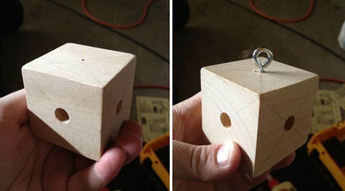 מחזיק צעצוע עשוי מקוביית עץ וו וו מתכת. בקדחה נקדחו 4 חורים, אליהם מוחדרים מקלות. צעצועים תלויים על מקלות, והוו מחובר למסגרת המוצר