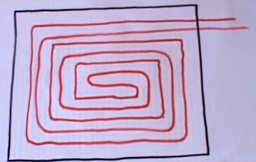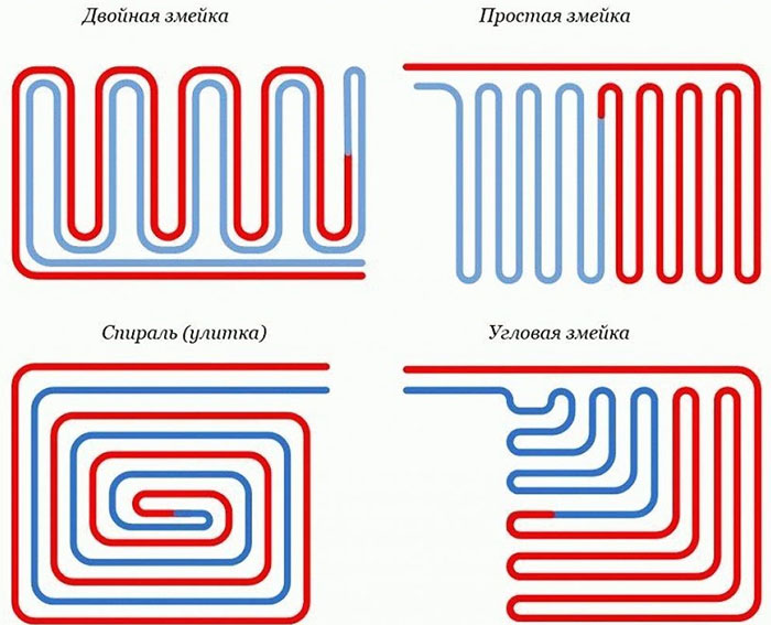 בעבר, יש צורך לחזות נכון כיצד ובאיזה צעד ימוקמו צינורות החימום התת רצפתי. התרשים שלהלן מציג מספר דרכים בהן ניתן לפרוש את צינורות נוזל הקירור.