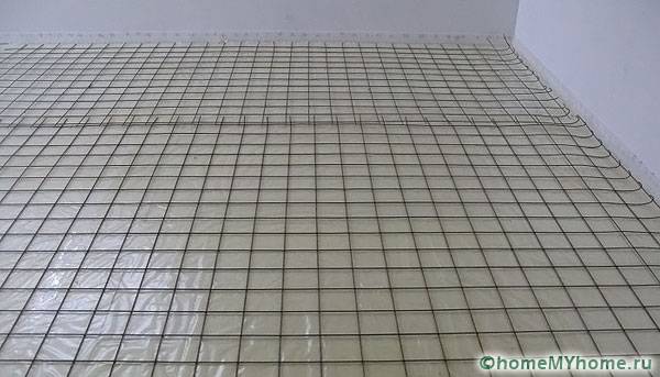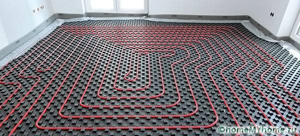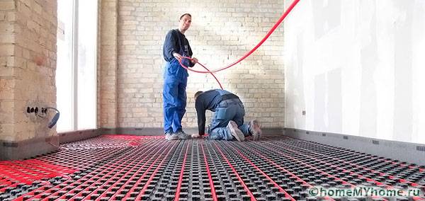 רשתות המים מותקנות באמצעות רשת מיוחדת, יריעות תיקון פוליסטירן או לוחות מחורצים. הבסיס המוכן מכוסה בסרט איטום.במהלך ההתקנה, רשת חיזוק מונחת על שכבת בידוד החום, שעליה מותקן הצינור. לפני שתמשיך בהתקנת הצינורות, יש לחשב את הציוד כדי להבטיח את העברת החום הנדרשת, תוך התחשבות בהפסדים. הצינור מותקן על המסגרת באמצעות מלחציים. המגהץ מחוזק מותקן גם על הכבישים המהירים.
