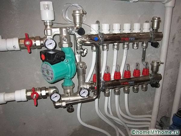הקו מהדוד מחובר למכשיר סעפת. הוא מותקן בארון מוכן. הראשי היוצא מהקולט מותקן מעל השטח הנדרש בהתאם לתכנית שנבחרה, וצינור ההחזרה מחובר לקולט ההחזר. אם מותקנים ענפים שונים, הסעפת מצוידת במספר מסוים של חורים נכנסים.