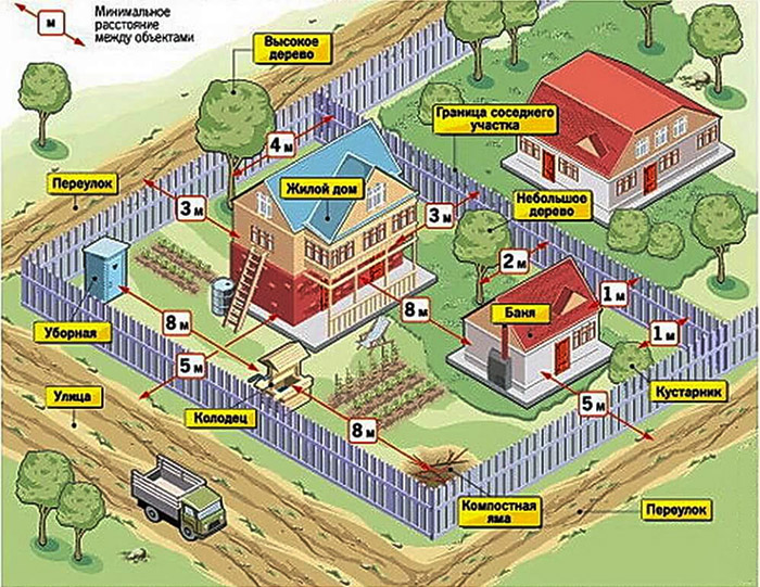 עבור גדר קוטג 'בקיץ בין שכנים, ישנם גם תקנים סניטריים ומשק ביתיים, הכוללים:
