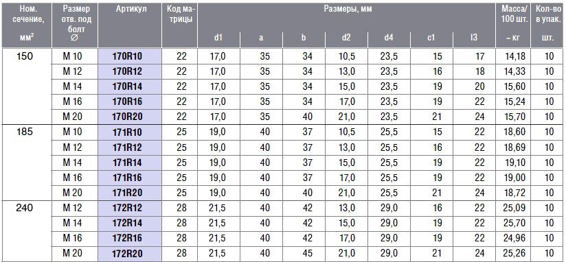 - בייצור תעשייתי משתמשים בלחיצת יד. זה מתאים לחוטים עד 240 מ"ר. מ"מ;