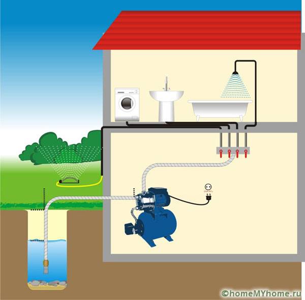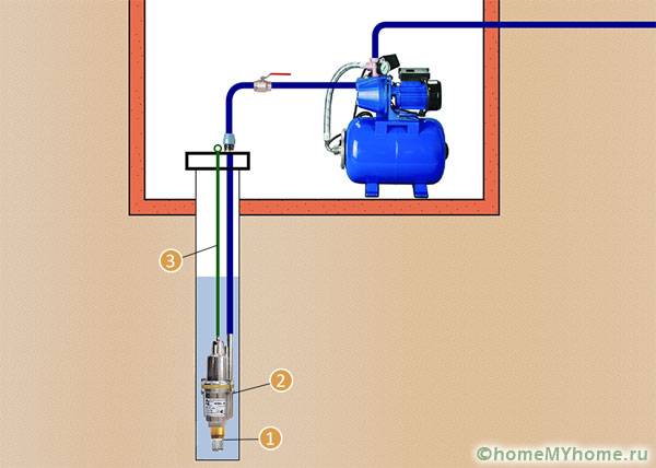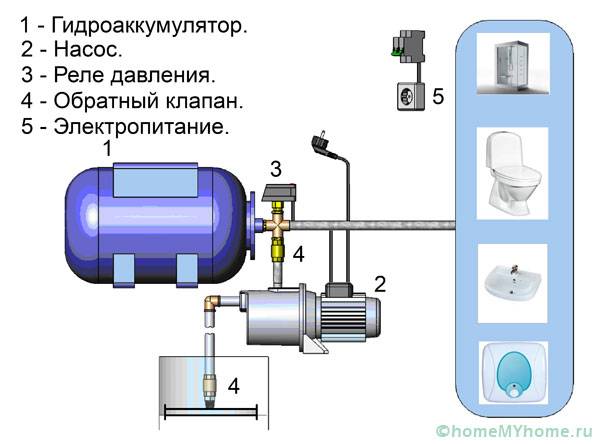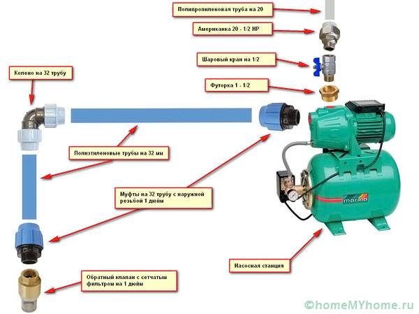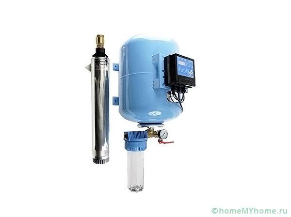 כחלק מתחנת שאיבה קלאסית עבור אספקת מים של בית פרטי כולל: