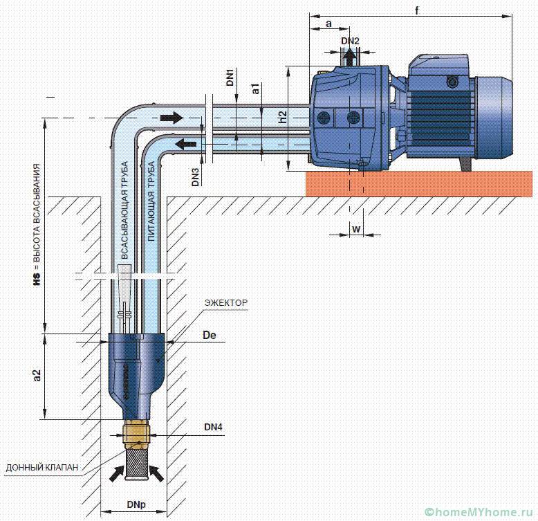 - טיהור עצמי עם מפלט מרוחק - הם נבדלים על ידי עומק יניקה משמעותי (יותר מ -40 מ '). המכשיר קשה למדי להתקנה. ככלל, הם נוקטים אם מפלס המים בנקודת צריכת המים הוא יותר מ 8-9 מ ', אך אין אפשרות להשתמש במשאבה טבולה.