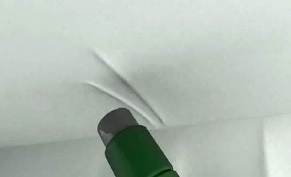 מייבש שיער לבנייה יעזור להחליק את הקפלים. כוון את זרימת האוויר מהמרכז לקיר. לאחר מכן, המפרקים מוסווים (אם ישנם) ומותקן התקע הדקורטיבי.