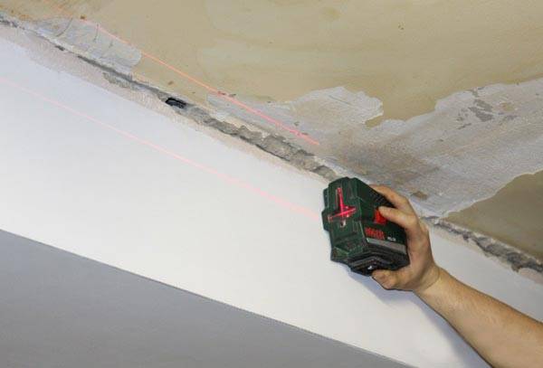 מדידת הפרמטרים של חדר הרחצה ואינדיקטורי הזוויות שלו מתבצעת באמצעות מד זווית. בהמשך מסומנים הקירות, שעבורם משתמשים במפלס ובעפרון. הכניסה המינימלית מהתקרה היא 4 ס"מ. זה גם לא יהיה מיותר לדאוג לתוספת בידוד רעש של התקרה מתחת לתקרת המתיחה.