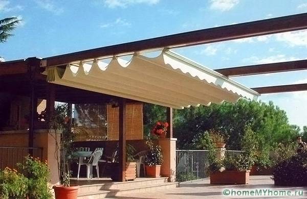 - דגמי פרגולה הם שני מתקנים בבת אחת, מחוברים באחד: נשלפים ואנכיים. בעת היצירה משתמשים במסגרת קיר ובבד סוכך. מתאים לסידור אכסניות ומרפסות.