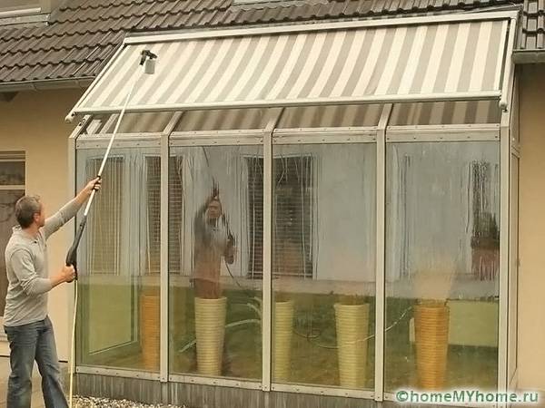מידע חשוב! עם כל ניקוי, עמידות ה- UV של החומר מופחתת. כדי להחזיר את תכונות ההגנה מפני השמש, מוחל סוכן מיוחד שמוח על פני השטח.