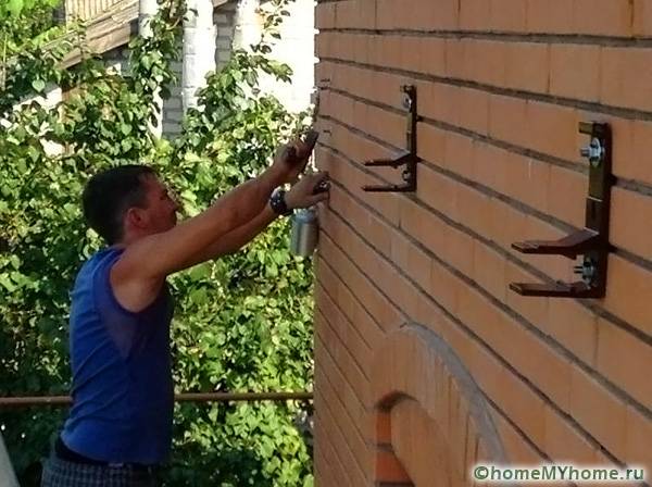 - התקנת סוגריים ותליית סוכך מתבצעת.