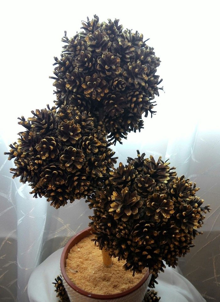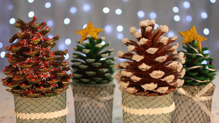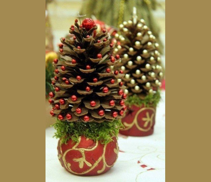 קישוט דקורטיבי בצורת עץ חג מולד קטן הוא כבר מסורת בבית בו נחגג השנה החדשה.כדי להפוך ערימה של קונוסים שונים לעץ חג מולד שאין שני לו, ניקח אקדח תרמי, אלמנטים דקורטיביים: חרוזים, פונפונים, עגילים ללא זוגות שהצטברו כבר כמה שנים, צבע אקרילי, נצנצים, זר LED יעבוד - הקישוט יכול להיות כל דבר, העיקר שהכל נראה הרמוני.