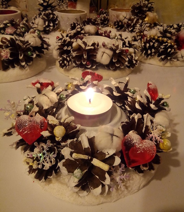 קחו בחשבון את קישוטי עץ חג המולד שתוכלו להכין, אם אתם לא עצלנים מדי ואוספים עוד קונוסים של אורן או אשוח. ילדים אוהבים לשפוך את דמיונם למלאכות השנה החדשה מתוך קונוסים ובלוטים, מדוע לא לחבר מבוגרים לבילוי שכזה?