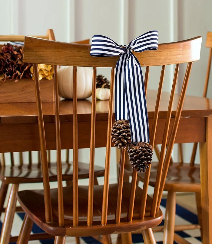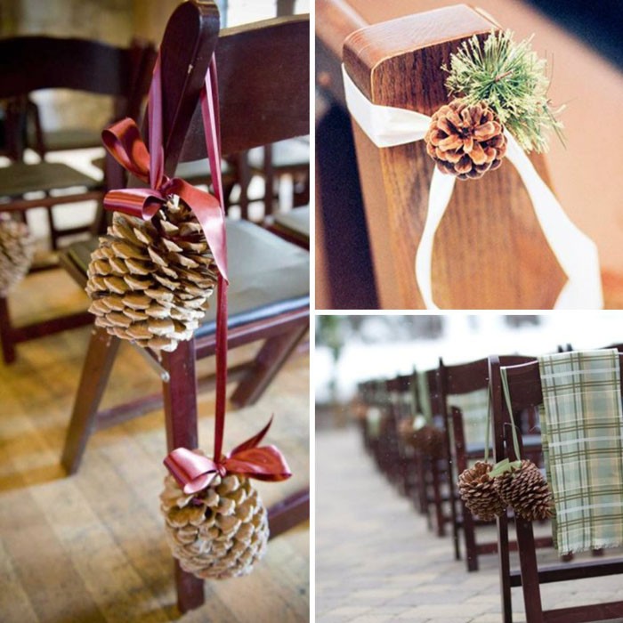 תפאורה לשנה החדשה של גב הכיסא עם קונוסים