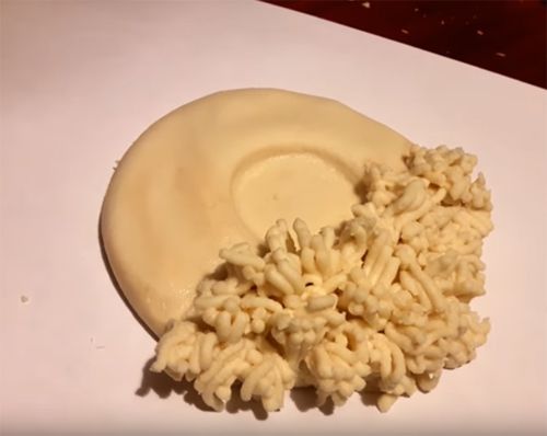 כל החומרים מעורבבים ביד או במיקסר עד לקבלת תערובת אחידה. לדגימה, קרע חתיכה וגלגל אותה לכדור. בורות מיוצרים על הכדור עם האצבע: הבצק האידיאלי ישמור על צורתו ולא יטשטש.