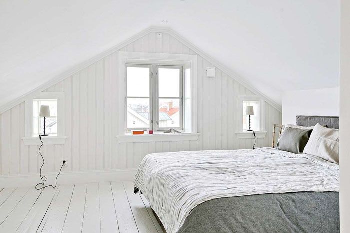 סגנון סקנדינבי מאופיין ברעננות הקפואה של טבע החורף. בחדר השינה תוכלו לשחזר פינה טבעית כזו בעזרת טפט לבן כשלג או מנצנץ.