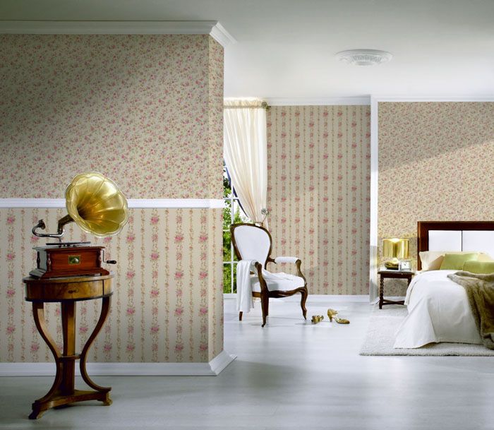 עבור חדר שינה בסגנון פרובנס, תוכלו לבחור טפט, כמו בתמונה למטה. צרפת הרומנטית הדרומית תופיע בחדר השינה בזכות רקע אפור בהיר, ורדרד, מנטה עדין, לילך בהיר עם הדפס פרחים חובה.