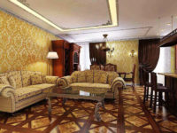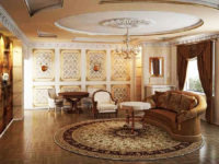 טפטים לסלון עשויים בסגנון ישן, ומדגישים את היוקרה והעושר של הקישוט: