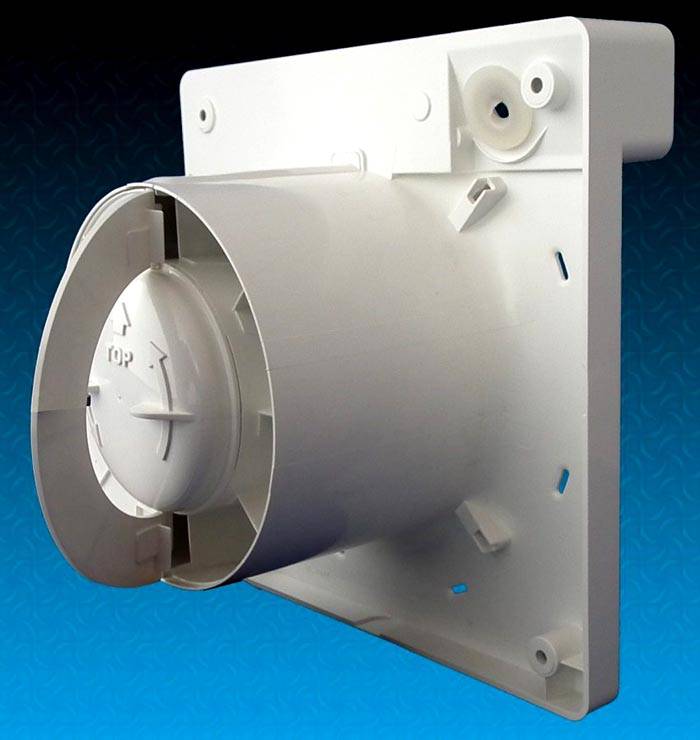 IN העיצוב הזה עלי הכותרת נלחצים על ידי קפיצים מובנים.הפרמטרים של מנגנוני החזרה אלה מחושבים בשלב התכנון. הם תואמים לביצועי הציוד (כוח זרימת האוויר). אם יש צורך להחליף חלק שבור, נבחר קפיץ חדש בעל מאפיינים דומים. עיצוב זה עם מספר רב של אלמנטים מפלסטיק מתאים היטב לחדרי אמבטיה. עם זאת, כדאי לבדוק את המלצות היצרן, את סוג ההגנה של המכשיר החשמלי, תוך התחשבות בלחות הגבוהה בחדר.
