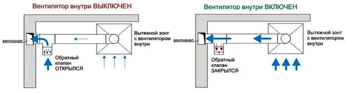 עם ההתקנה הזו ברדסים למטבח עם שסתום שאינו חוזר, האוורור פועל ברציפות. אם תפעיל את מהירות המאוורר הרצויה, מהירות הסרת הפסולת תוגדל. כמובן, אסור לשכוח מיצירת אספקה מספקת של אוויר צח.