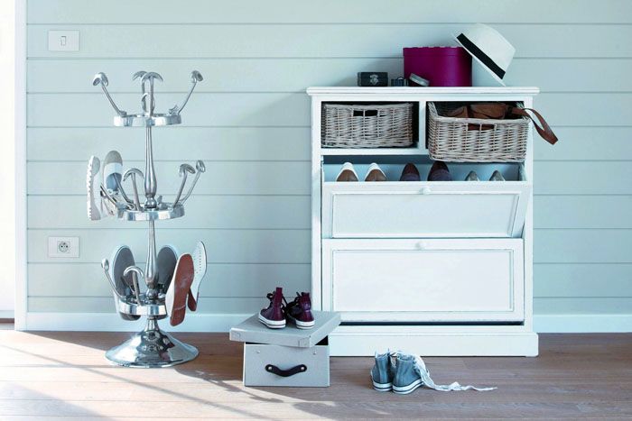 עֵצָה! לפעמים שידות אלה מכילות תאים אנכיים: ניתן להציב כאן מגפיים גבוהים או מטריות ארוכות.