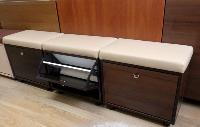 לארונות סגורים יתרונות וחסרונות משלהם. זה יכול להיות גם שידת מגירות או שולחן מיטה עם מושב, מה שחוסך מקום - אתה לא צריך לחפש מקום של עות'מאן לנעול נעליים נוחות יותר.
