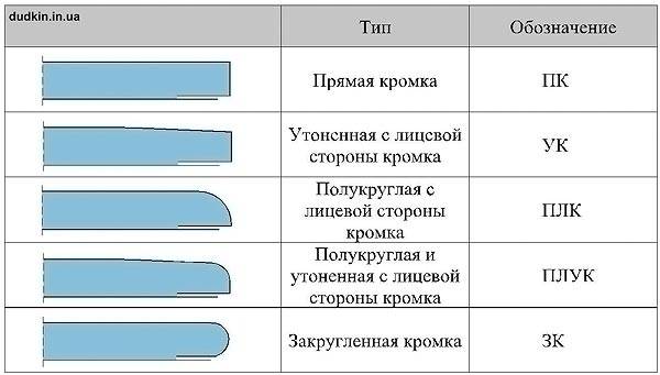 כמעט כל יצרני גבס מגבס גוזמים את המוצרים שלהם עם קצה שנמצא לאורך הצד הארוך ביותר של הסדין.ככלל, לקצה הקצה יש עובי מינימלי, כך שלאחר התיקון ניתן לתקן את הקירות בעזרת מרק או כל חומר פונה אחר. עם זאת, כאשר מכסים קירות בכמה שכבות, יש לחתוך את הקצה. זה נעשה כדי למנוע סדקים והתדרדרות פני השטח. תחת משקלם של יריעות נוספות, קיר גבס מתחיל להידרדר.