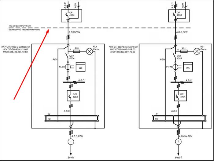 הערה! גבול תחום האחריות מוצג בחוזה לאספקת החשמל של אובייקט ספציפי.