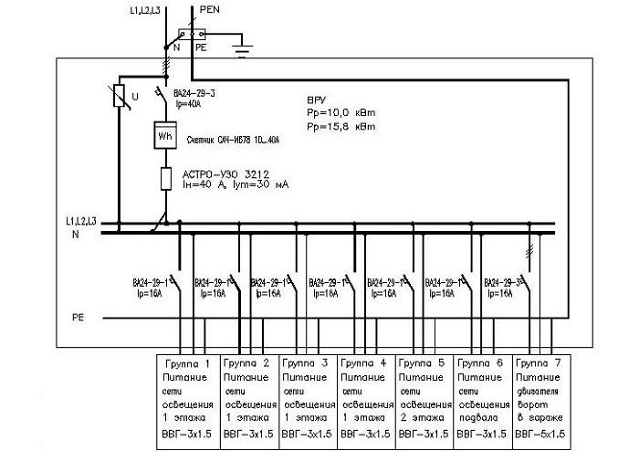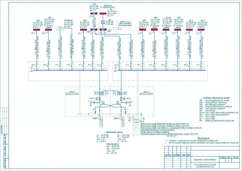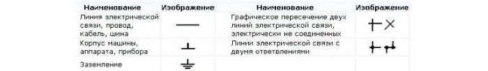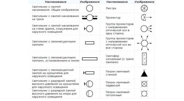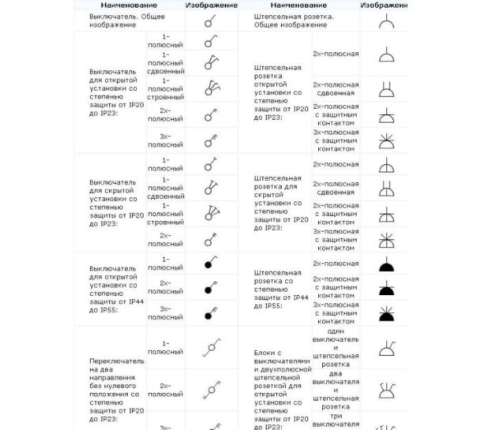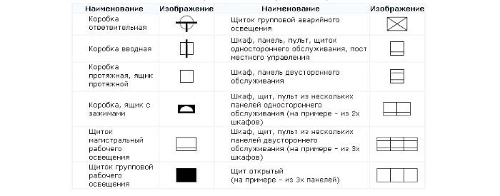 כל האלמנטים של מערכת אספקת החשמל מוצגים בתרשים בצורה של תמונות גרפיות, המוסדרות על ידי הספרות הרגולטורית שצוינה בסעיף הקודם של המאמר. קופסאות חשמל וארונות למטרות שונות מתוארים כדלקמן.