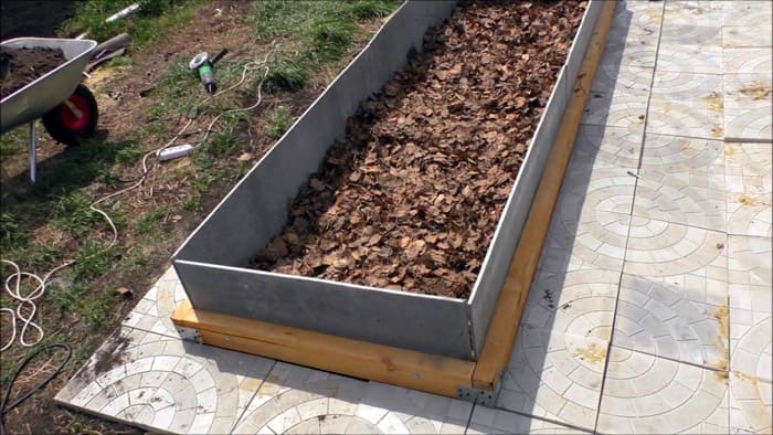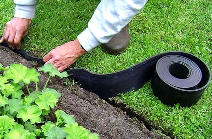סביב המיטה נחפרת תעלה שעומקה אמור להחזיק היטב את חומר המגן. המוצר מוריד לתעלה ומכוסה באדמה. אם האדמה רפויה, אתה יכול להוסיף חימר. הכל נדחס בתוספת מים.