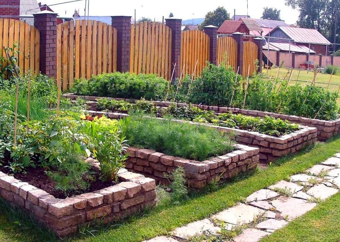 לסידור הגדר, השתמש בכל לְבֵנָה... הנחת יכולה להיות אופקית או אלכסונית ישרה, אם המיטות קבורות באדמה, אנכית, ברמת אדמה רגילה.