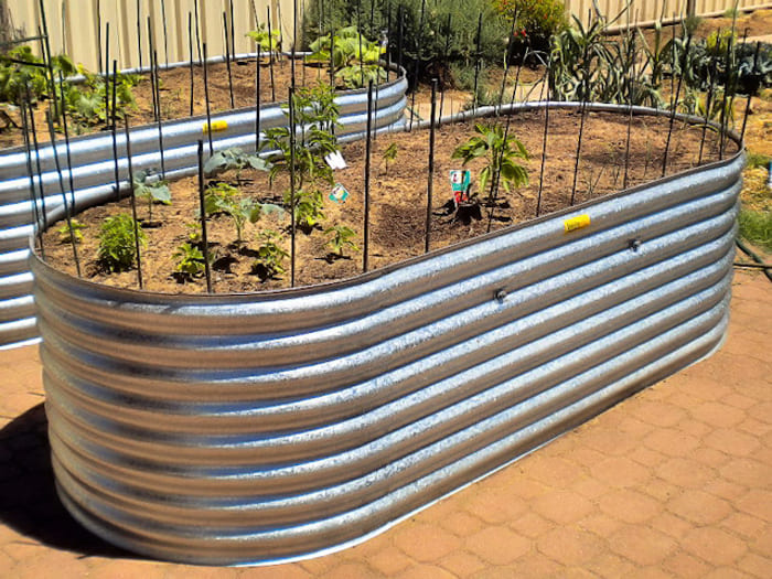 אם תרצו בגינת הרומנטיקה הצרפתית, תוכלו לחפש מיכלי מתכת מגולוונים. פלדה מתגלה בכל מקרה כבחירה טובה יותר מברזל.