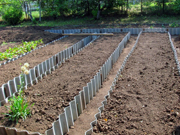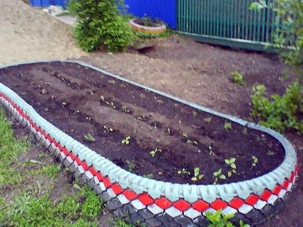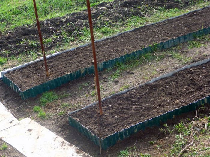 אתה יכול לקשט את המיטות במודולי פלסטיק: הם נמכרים במרכזי גן ובחנויות אחרות. יש מספיק מבחר: סרט גבול או דפנות מוכנות - מחירי החומר שונים, כמו גם ביצועי הצבע.
