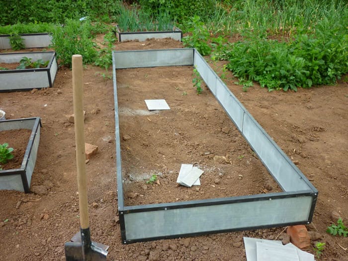 מיכלי מתכת כגדר למיטות גן