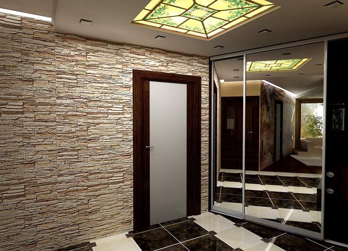 על התמונה עיצוב מסדרון עם אבן דקורטיבית, אתה יכול לראות שגימור כזה נראה עשיר באמת.