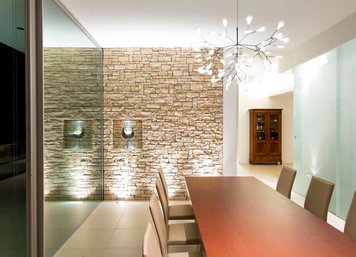 להלן דוגמאות לגימורי אבן דקורטיביים בדירה עם התאורה הנכונה: