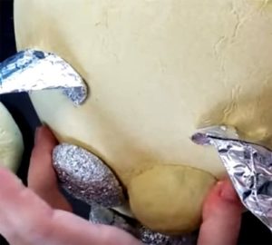 - עם השכבה הראשונה על הבסיס, אנו מורחים את פיסות העיתון שרק ספוגות במים, והשכבות הנותרות מצופות מראש ב- PVA ונותנות להן להתייבש. למען כוחה וחסדיה של המסכה, עדיף להחליף שכבות של עיתון ומפיות.