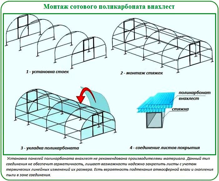 כדי להשיג תוצאה מצוינת, עליך לשים לב להמלצות להרכבה והתקנת המסגרת. מומלץ להשתמש ביריעות חלת דבש פוליקרבונט בעובי של 4-6 מ"מ. פוליקרבונט הוא חומר שאינו מאפשר לעבור אוויר, ולכן גם בשלב השרטוט נפתרת בעיית האוורור, כמו גם גישה למים לחממה.