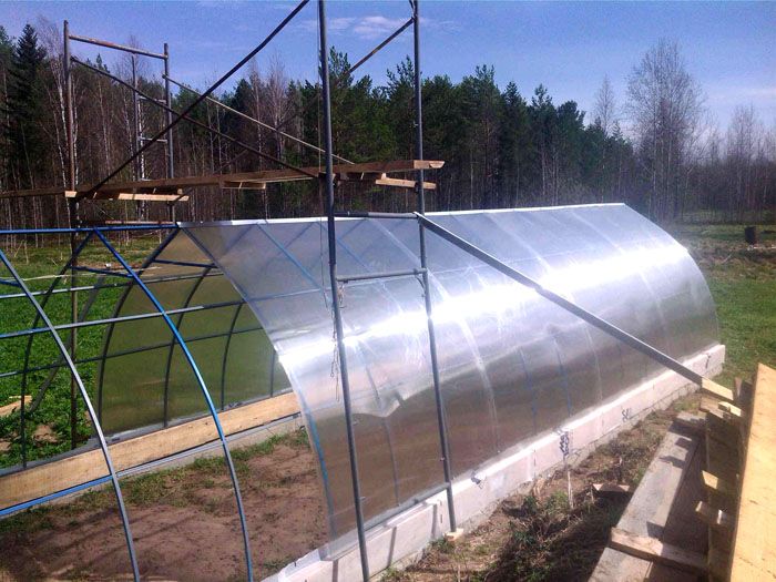 ראשית, הם סוגרים את קצוות החממה ויוצרים דלת. ואז הם מתחילים להניח ולצרף את הסדינים מכל צד של החממה.מלאכת הכנת החממה של בורגול פוליקרבונט אינה קשה וכמעט ולא תימשך יום אחד במיוחד אם ישנם עוזרים.
