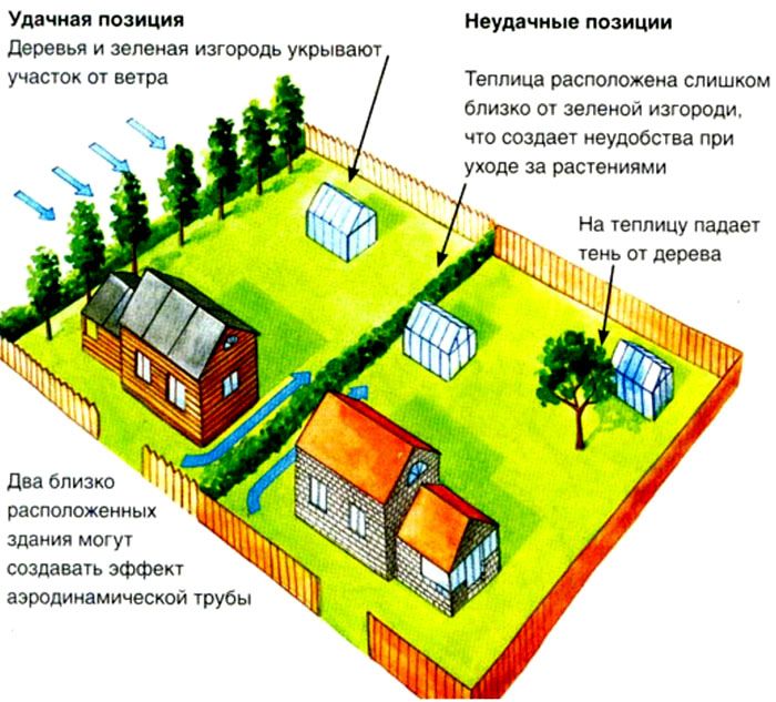 בתמונות מוצגות אפשרויות שונות להצבת המבנה על חלקת הקרקע. ניתן לשנות את גובה ורוחב הלוחות בגבולות קטנים. קליפים מתקנים את החומר ליצירת צל, תאורה, שידור, השקיה וביצוע פעולות עבודה אחרות. הגנה זו במבנה סגור מונעת נזק לצמחים בכפור עד -5 מעלות צלזיוס.