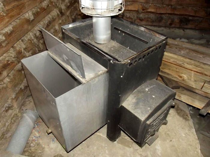למיכל הממוקם בנפרד יתרונותיו - הוא לא מאדה לחות בחדר האדים ובמקביל מחמם את החדר הסמוך. עדיף לקחת טנקים מנירוסטה, הם מסוגלים לעמוד אפילו במים רותחים תלולים.