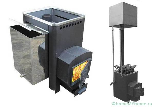 תנורי עץ לאמבטיה עם מיכל מים יכולים להיות משני סוגים, תלוי בחומר הבסיס: