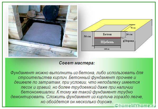 השלב הראשון של בניית כבשן לבנים הוא הבסיס. הבסיס לתנור סאונה מעץ לבנים עם מיכל מים חייב להיות חזק במיוחד. זה נעשה בדרך זו: