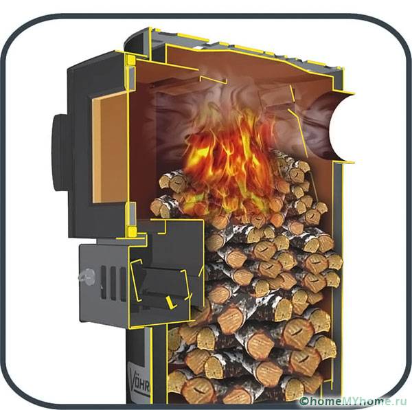 כמעט כל מקורות החום המצויים בעץ מתפקדים על פי עיקרון זה: ראשית, עץ מונח בתא האש, המחמם את הציוד, וקירותיו מייצרים העברת חום. כתוצאה מכך, החדר מחומם במהירות, אך יחד עם זאת הטמפרטורה לא נמשכת זמן רב, ולכן יש צורך להניח כל הזמן עצי הסקה.