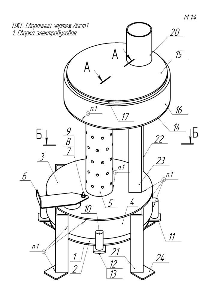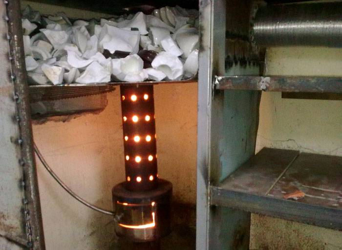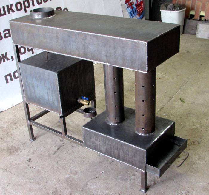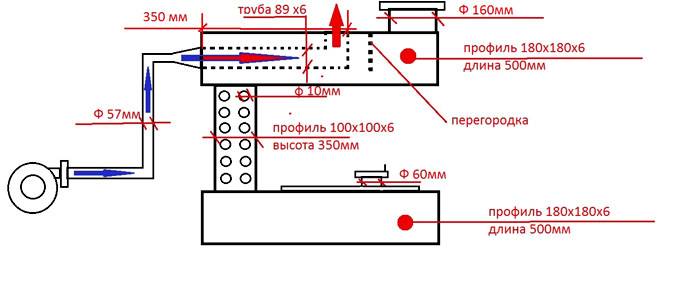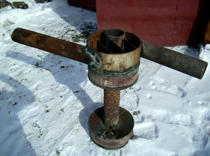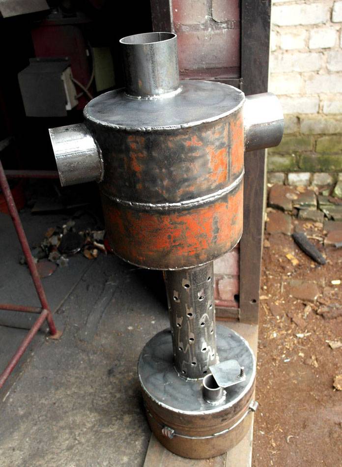 בצינור החיבור נקדחו 48 חורים, שמונה מהם עשויים במעגל ושישה בגובה. הקוטר שלהם צריך להיות 9 מ"מ. זה הכרחי עבור הצרוב, בו האדים הבוערים יהיו רוויים בחמצן. בשלב הסופי, ארובה מחוברת למבנה.