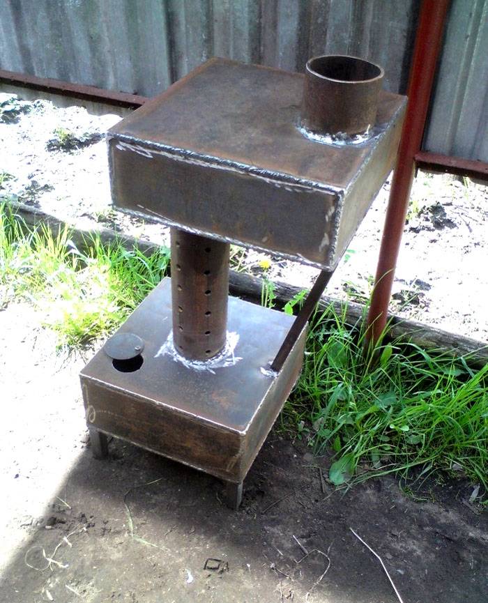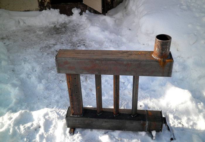 יש לחלק את הפנים לשני תאי בעירה. האחד יהיה בתחתית והשני בחלקו העליון. בצד התחתון, רגליים מפינות מתכת מחוברות על ידי ריתוך. מחיצה מחוברת לכיסוי החדר העליון באותו אופן. זה צריך להיות ממוקם קרוב יותר לארובה.